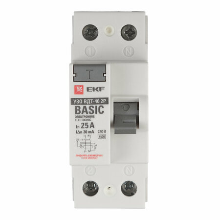 УЗО EKF Basic ВДТ-40 25А 30 мА 2P тип AC 4,5 кА (elcb-2-25-30e-sim)