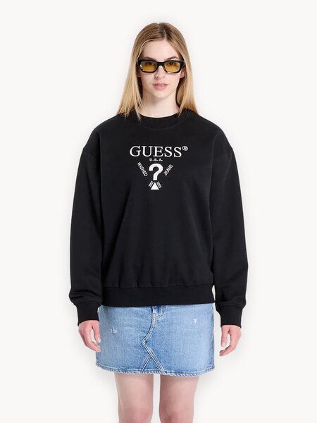 Логотип GUESS на груди, добавляющий элемент брендинга