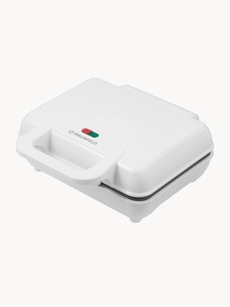 Классическая прямоугольная вафельница мощностью 1000 Вт, сделанная из термостойкой пластмассы белого цвета, позволит за 5 минут приготовить две большие аппетитные венские вафли размером 10х15. Это самая большая вафельница в нашей линейке. На верхней крышке располагается индикатор нагрева, позволяющий определить время начала готовки, и индикатор электропитания. Пластины вафельницы имеют антипригарное покрытие, так что после готовки будет достаточно протереть их бумажным полотенцем или салфеткой.