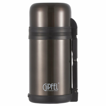 Вакуумный термос Gipfel Santos 52332. Объем 1 л. Корпус изготовлен из нержавеющей стали 18/10, материала прочного, безопасного для здоровья и долговечного. Термос имеет широкое горло и удобную ручку вдоль боковой стенки. Корпус темно-серого цвета с логотипом Gipfel. Отлично сохраняет температуру как горячих, так и холодных напитков в течение 6 часов. Для эффективного сохранения тепла рекомендуется предварительно нагреть термос, налив горячей воды. Термос подойдет для напитков и еды в долгих туристических походах или на пикнике. Упакован в фирменную коробку. Станет отличным подарком. Рекомендации по использованию и уходу: