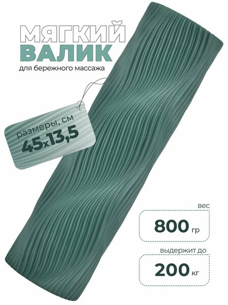 Массажный валик для спины это идеальный инструмент для тренировок и поддержания здоровья. Ролл средней жесткости подходит для начинающих и профессиональных спортсменов. Выдерживает нагрузку в 200 кг. Фитнес, йога или пилатес, рол 45 см, подойдет для любых видов занятий. Волнистая структура деликатно проминает мышцы, разгонят кровь в сформированных местах, что кратно увеличивает скорость восстановления после силовых тренировок. Идеален для самостоятельных МФР занятий. Аккуратно раскатывайтесь в районе поясницы и ног держа баланс на трех точках опоры. Регулярная проработка роликом, бедер и ягодиц сделает их подтянутыми и стройными, поможет избавиться от целлюлита. Соблюдайте технику безопасности, дышите, прокатывайте роллер медленно и сконцентрировано. Соблюдайте регулярность в занятиях. Ролик весит всего 800 грамм, его удобно брать с собой в тренажерный зал или на площадку. За ним удобно ухаживать, не впитывает запахи и выполнен из экологически чистого материала EVA. Это отличный подарок для мужчин и женщин, занимающихся любым видом спорта, а также тех кто заботиться о своем здоровье.