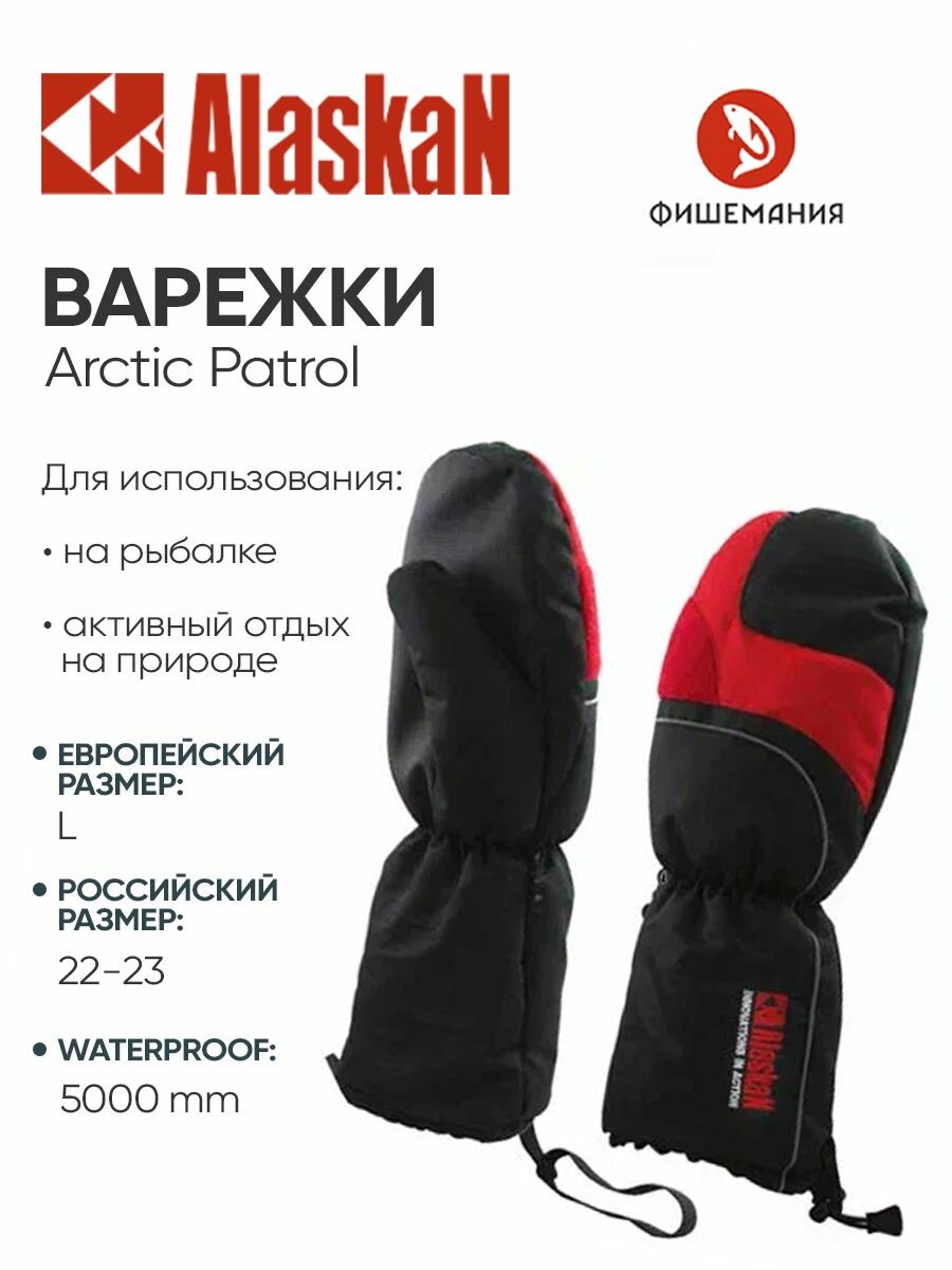 Варежки для зимней рыбалки и активного отдыха на природе, имеющие эргономичную форму, а также усиленный край лицевой части. На запястье регулировочная стропа на застежке-липучке «Велкро». Внутренняя часть варежек Alaskan Iceberg выполнена из искуственной кожи. Особенность данного материала в том, что он не даст варежке промокнуть, даже при условии, что вы берете рыбу в руки. Край варежки имеет фигурную форму и снабжен кулиской.