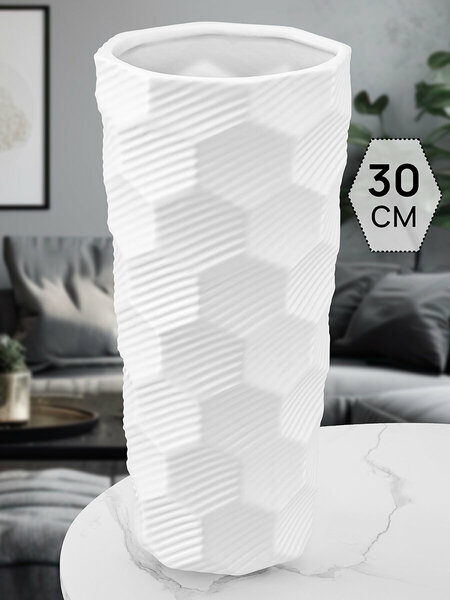 Ваза "Соты" 30,5 см 2,8 л, белая, полный размер - 14,5х14,5х30,5 см, внутренний диаметр горлышка - 12 см