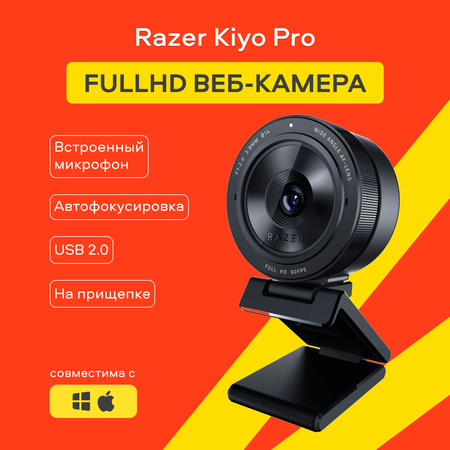 Razer Kiyo Pro - веб-камера FullHD USB, оснащенная высокопроизводительным самонастраивающимся под освещенность сенсором, за счет которого вы сможете наслаждаться четким и высоким качеством изображения при любых настройках и условиях освещения. Эта веб-камера FHD USB, оснащенная сверхчувствительным CMOS-датчиком типа 1 / 2.8 большего размера с технологией STARVIS™*, может определять, насколько ярким или темным является окружающее пространство, и каждый раз соответствующим образом настраивать изображение для получения идеальной четкости. Сделайте свою трансляцию более яркой, активируя режим HDR со скоростью 30 кадров в секунду, что увеличивает динамический диапазон, в реальном времени корректируя области с недостаточной или завышенной экспозицией. От демонстрации большего количества ваших устройств и окружения до захвата большего количества людей в кадре, широкоугольный объектив с большой диафрагмой позволяет выбирать три параметра поля зрения с помощью Razer Synapse. Razer Kiyo Pro поставляется с защитной шторкой, чтобы защитить линзы и обеспечить приватность пользователей, когда камера не используется. Чтобы улучшить качество изображения, долговечность и прочность Razer Kiyo Pro, его линза изготовлена из устойчивого к повреждениям и царапинам стекла Corning Gorilla® Glass 3. В лабораторных испытаниях стекло Gorilla Glass 3 в 4 раза более устойчиво к царапинам по сравнению с конкурентоспособным алюмосиликатным стеклом других производителей.