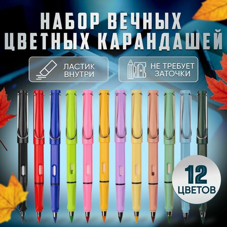 Набор вечных цветных карандашей – это прекрасное приобретение для работы или учёбы. Не требует заточки и не ломается. Пишущий узел рассчитан на долгий срок службы. Идеальное дополнение к вашему пеналу или офисным принадлежностям. Подходят как для детей, так и для взрослых, и могут использоваться как для школьных занятий, так и для творческих проектов. Один Вечный Карандаш способен заменить до 100 обычных. Грифель, изготовленный из вольфрамового сплава, оставляет четкий след, идентичный обычному грифелю, и не изнашивается с течением времени. Это не только экономия, но и забота о природе. Не нужно заточки, что означает, что меньше древесины будет использовано для изготовления, а также меньше отходов в виде стружки. Удобно сидит в руке, подходит как для правшей так и для левшей. Грифель пишет тонко, легко скользит по бумаге. Внутри находится ластик, который гарантирует чистое удаление записей и рисунков без повреждения бумаги. Теперь ластик никогда не потеряется! Это отличный канцелярский набор как для школы , так и в качестве подарка.