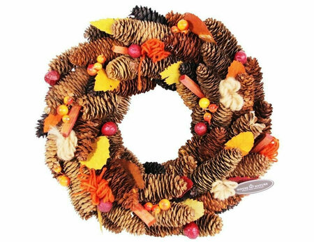 Венок из шишек, 36 см, Hogewoning Характеристики: Диаметр - 36 см. Материал: шишки, пластик. Производитель - HOGEWONING, Нидерланды. Производство размещено в Китае.
