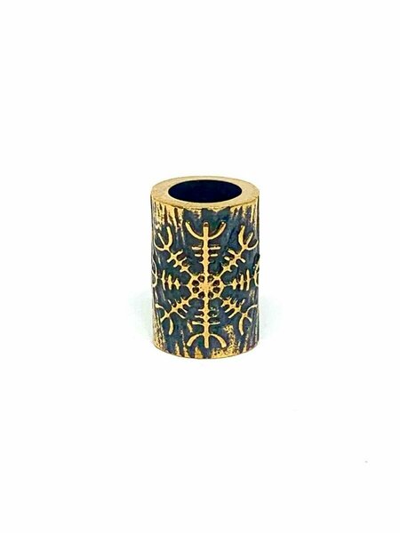 Вербица. Скандинавский оберег. Шарм. Бусина Шлем Ужаса. Ювелирная бронза 4 гр. Размеры: высота 12 мм, внешний диаметр 9 мм, внутренний диаметр 6 мм. Ручная работа. Скандинавские шармы бусины обереги - это миниатюрные кулоны, которые надеваются на шнур или цепочку. Шармы можно носить на браслете. Часто из шармов - оберегов составляют набор и нанизывают на шнур в нужном или произвольном порядке. Браслет с шармами может стать очень оригинальным и модным подарком, который придется по душе любимой девушке, дорогой дочке или самой лучшей в мире жене. Бусины можно легко менять, придавая своему изделию особый стиль. Шлем Ужаса (Агисхьяльм) — один из символов северных народов, обладающий особой силой. Способен придавать владельцу смелость, решительность и духовную силу, а также подавлять волю противника. Бусина изготовлена из бронзы – одного из самых древних сплавов, известных человечеству. Это соединение олова и меди. Свойства этого металла – твёрдость, прочность и устойчивость к коррозии. Магические свойства бронзы – это объединение разнородных элементов, интеграция энергий. Бронза способна накапливать энергию и укреплять организм человека. Металл психологически помогает тем, кто утратил внутреннюю гармонию. Талисманы и обереги из бронзы направленны на налаживание взаимопонимания между людьми. Особенно хороши бронзовые талисманы для семейного благополучия. Изделия из бронзы помогают в укреплении духа, а также в улучшении материального достатка. Имея в составе большое количество меди, бронза обладает противовоспалительными свойствами, дарит энергию и улучшает настроение. Так, человек становится более уверенным в себе, более устойчив к раздражителям и дурным мыслям. Бронзовые украшения помогают восстанавливать внутреннее равновесие и усиливают защитные функции организма. Амулеты из бронзы никогда не выходят из моды, символизируя высокий эстетический вкус своего обладателя.