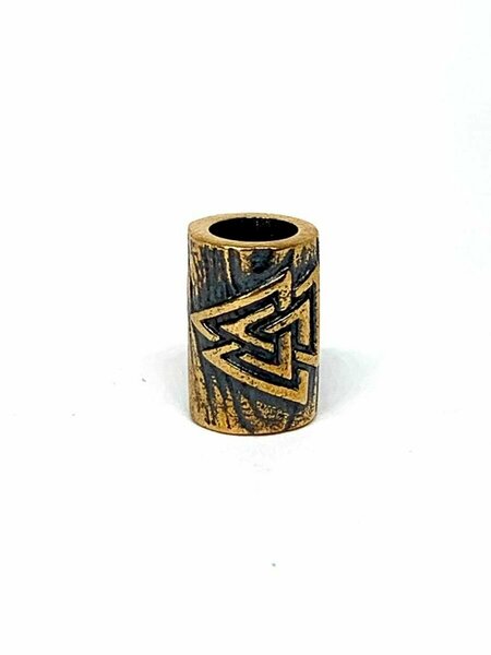 Вербица. Скандинавский оберег. Шарм. Бусина Валькнут. Ювелирная бронза 4 гр. Размеры: высота 12 мм, внешний диаметр 9 мм, внутренний диаметр 6 мм. Ручная работа. Скандинавские шармы бусины обереги - это миниатюрные кулоны, которые надеваются на шнур или цепочку. Шармы можно носить на браслете. Часто из шармов - оберегов составляют набор и нанизывают на шнур в нужном или произвольном порядке. Браслет с шармами может стать очень оригинальным и модным подарком, который придется по душе любимой девушке, дорогой дочке или самой лучшей в мире жене. Бусины можно легко менять, придавая своему изделию особый стиль. Валькнут древний магический скандинавский символ. Очень эффектный и красивый подарок, который подойдет как мужчине, так и женщине. Этот оберег поможет человеку познать себя, разобраться в собственном смысле жизни, развить интуицию или даже одарить ясновидением. Амулет поможет сделать логическое мышление более быстрым ясным и острым, улучшить память, сконцентрировать его внимание на решении насущных проблем, подарят житейскую мудрость. Этот символ отводит от человека беды и прочие неприятности. Талисман Валькнут нельзя назвать простым оберегом. В нём заключена невероятная мощь, благодаря которой он способен коренным образом менять жизнь человека. Часто, прежде чем начать действовать, Валькнут испытывает владельца, посылая ему испытания. Если выдержать их с честью – можно рассчитывать на небывалую удачу и благосостояние. Бережно обращайтесь с талисманом, очищайте его с помощью соли и этот символ наполнит Вашу жизнь гармонией, обеспечив дополнительную защиту от сглаза и порчи. Бусина изготовлена из бронзы – одного из самых древних сплавов, известных человечеству. Это соединение олова и меди. Свойства этого металла – твёрдость, прочность и устойчивость к коррозии. Магические свойства бронзы – это объединение разнородных элементов, интеграция энергий. Бронза способна накапливать энергию и укреплять организм человека. Металл психологически помогает тем, кто утратил внутреннюю гармонию. Талисманы и обереги из бронзы направленны на налаживание взаимопонимания между людьми. Особенно хороши бронзовые талисманы для семейного благополучия. Изделия из бронзы помогают в укреплении духа, а также в улучшении материального достатка. Имея в составе большое количество меди, бронза обладает противовоспалительными свойствами, дарит энергию и улучшает настроение. Так, человек становится более уверенным в себе, более устойчив к раздражителям и дурным мыслям. Бронзовые украшения помогают восстанавливать внутреннее равновесие и усиливают защитные функции организма. Амулеты из бронзы никогда не выходят из моды, символизируя высокий эстетический вкус своего обладателя.