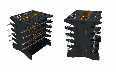 Вертикальный мангал толщиной 5мм. Мангал вертикальной жарки. Габариты мангала ДхВхГ 405х450х310 мм. На 10 шампуров. Дыма практически нет, так как жир не капает на угли. На верхней части можно расположить казан, закипятить чайник, или легко приготовить дополнительную еду с дымком на сковороде. При необходимости, просто досыпаете углей сверху и мангал снова в работе! Мангал сварной, что делает его надежным и долговечным в отличии от разборных. Только у нас мангалы покрашены термостойкой эмалью, которая выдерживает 1000°С.