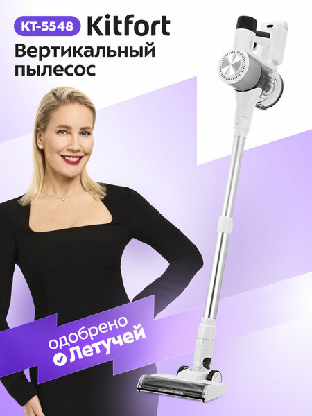 Приберусь в момент! Беспроводной вертикальный пылесос КТ-5548 очень удобен при локальной уборке. Благодаря работе от аккумулятора не нужно включать его в розетку, поэтому пылесос имеет неограниченный радиус действия: от любого уголка квартиры до машины или беседки в саду. Кронштейн для удобного хранения У пылесоса нет функции вертикальной парковки, поэтому рекомендуется устанавливать на кронштейн, который крепится к стене. Для владельцев небольших квартир приобретение этой модели будет оптимальным вариантом. Простое управление Управление пылесосом осуществляется с помощью кнопок на ручке. Кнопкой «Мощность» вы сможете циклично переключать 3 уровня мощности, а индикация подскажет, какой уровень выбран. Также индикация подскажет: уровень заряда и заполненность пылесборника. Ручной пылесос с насадками Конструкция «2 в 1» предусматривает наличие ручного пылесоса, который удобно использовать отдельно. Ручным пылесосом можно пропылесосить углы, обивку мебели или коврики в автомобиле. Для разных типов загрязнений можно использовать насадки из комплекта. Многоуровневая система фильтрации Пылесос оборудован циклонным фильтром, обеспечивающим хорошую очистку. Крышка пылесборника легко открывается, а пыль из него вытряхивается. Внутри находится фильтр тонкой и грубой очистки с металлической сеткой, которые можно вынуть и почистить. Ни пылинки мимо! Пылесос комплектуется напольной насадкой с турбощёткой, которая помогает справиться с очисткой гладких поверхностей и ковровых покрытий с не очень длинным ворсом. Светодиодная подсветка напольной щётки сделает уборку комфортной даже в затемнённых местах.