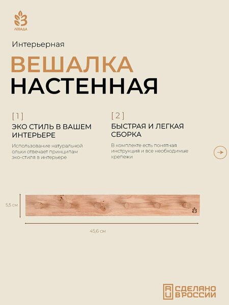 Настенная вешалка из ольхи — это баланс между пользой и визуальной лёгкостью. Натуральная древесина наполняет пространство теплом и спокойствием, а лаконичный дизайн подчёркивает современный минимализм. Подходит для банных зон, санузлов и прихожих.