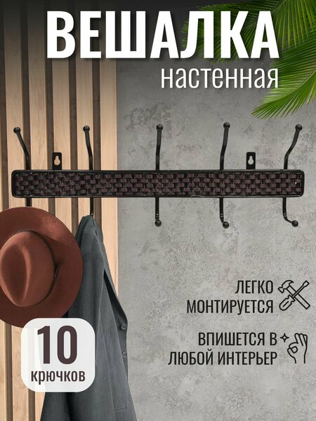 Вешалка настенная — это идеальное решение для хранения одежды в различных помещениях. Вешалка для одежды изготовлена из прочного металла, что делает ее долговечной и надежной. Универсальная вешалка для хранения вещей имеет 5 двойных крючков. Крючки выдерживают достаточные нагрузки, чтобы с комфортом размещать на них различные бытовые принадлежности. Оптимальный размер крючка подойдет для вещей с маленькой петелькой, не позволяя им падать. Настенная вешалка легко устанавливается, не нуждается в специальных условиях для эксплуатации, защищает одежду от повреждений и имеет долгий срок службы. Для монтажа держателя одежды понадобятся саморезы от 40 мм и дюбеля соответствующей длины, которые не входят в комплект в связи с тем, что на разные стены требуется разный крепеж. Материал: металл. Способ размещения: подвесная. Тип: открытая.