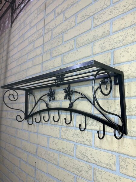 Вешалка №16 Размер: ширина 80 см высота 23 см глубина 20 см цвет: чёрный с патиной серебром. Описание: Кованые вешалка от производителя! Отличное качество, ручная работа! Санкт-Петербург. "Студия кованой мебели НиВа" Гарантия 10 лет! на металл. Ручная работа. горячая ковка. Сварка используется по периметру сварных соединений, что значительно повышает прочность. Покраску используем порошковую, + патина (Италия) что значительно повышает износостойкость. Будем благодарны за Ваш отзыв!