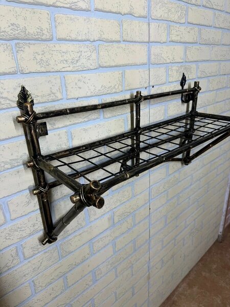 Вешалка из кованого бамбука Размер: ширина 80 см высота 40 см глубина 25 см цвет: чёрный с патиной серебро. Ручная работа. Горячая ковка. В вешалке используются материалы: труба20х8мм. пруток 6мм. Сварка используется по периметру сварных соединений, что значительно повышает прочность. Покраску используем порошковую, что значительно повышает износостойкость. Если Вы хотите, чтобы входя в Ваш дом, чувствовалось особое настроение легкости и утонченности, то Вам понадобится кованая вешалка в прихожую. от производителя Кованая мебель студия Нива.