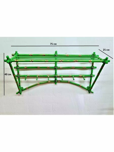 Кованая вешалка в стиле бамбуковых веток, ручная работа , порошковая покраска, патина золото (Италия). Размеры 75х40х25. Настенная кованая вешалка, представляет собой высококлассную работу мастера ковки. С приобретением настенной кованой вешалки, вы внесете в свой дом изысканность и благородство, не говоря уже о выгодности данного приобретения, кованые вешалки являются долговечным и надежный предмет интерьера. Вешалка настенная от студии кованой мебели "Нива" - это стильное и функциональное решение для вашего дома. Изготовленная из прочного металла, она обеспечивает долговечность и надежность в использовании. Дизайн вешалки выполнен в зеленом цвете, который добавит свежести и гармонии в интерьер. Количество крючков на вешалке составляет 6 штук, что позволяет разместить большое количество одежды. Размеры вешалки составляют 25 см в высоту и 75 см в ширину, что делает ее компактной и удобной для размещения в любом уголке вашего дома. Выбирая вешалку настенную от студии кованой мебели "Нива", вы получаете стильное и практичное решение для хранения вашей одежды.