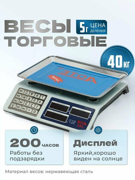 Электронные торговые весы — это надёжное и современное устройство для точного измерения веса различных продуктов и предметов. Благодаря высокой чувствительности и точности измерений, весы обеспечивают стабильный и достоверный результат даже при небольшом весе. Компактный и эргономичный дизайн делает их удобными для использования как на кухне, так и в магазине, на рынке или дома. Весы занимают минимум места и легко перемещаются, что особенно важно для ограниченного рабочего пространства. Устройство оснащено чётким цифровым дисплеем, на котором удобно считывать результаты даже при ярком освещении. Простые кнопки управления позволяют быстро включать, сбрасывать и переключать режимы взвешивания, что экономит время и повышает эффективность работы. Весы работают от сети или батареек (в зависимости от модели), имеют устойчивую поверхность и противоскользящие ножки, обеспечивающие надёжную фиксацию во время измерения. Благодаря сочетанию точности, надёжности и удобства, эти электронные весы станут незаменимым помощником в быту, кулинарии и торговле.