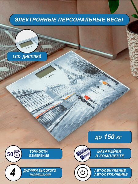 Напольные весы - это простой и удобный способ контролировать свой вес! Благодаря высокочувствительным датчикам погрешность составит не более одной цены деления: 50 г. Максимальный вес: 150 кг. Ультратонкий дизайн обеспечит компактное хранение. Материал платформы - высокопрочное закаленное стекло. Автоматическое включение и выключение позаботятся об экономом расходе заряда батареи. Жидкокристаллический дисплей 26 x 26 мм делает эксплуатацию весов комфортнее. Прорезиненные ножки придают дополнительной устойчивости и предотвращают скольжение. А приятное цветовое решение позволят прибору не только вписаться в любой интерьер, но и радовать глаз каждый день!