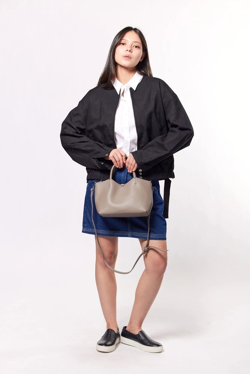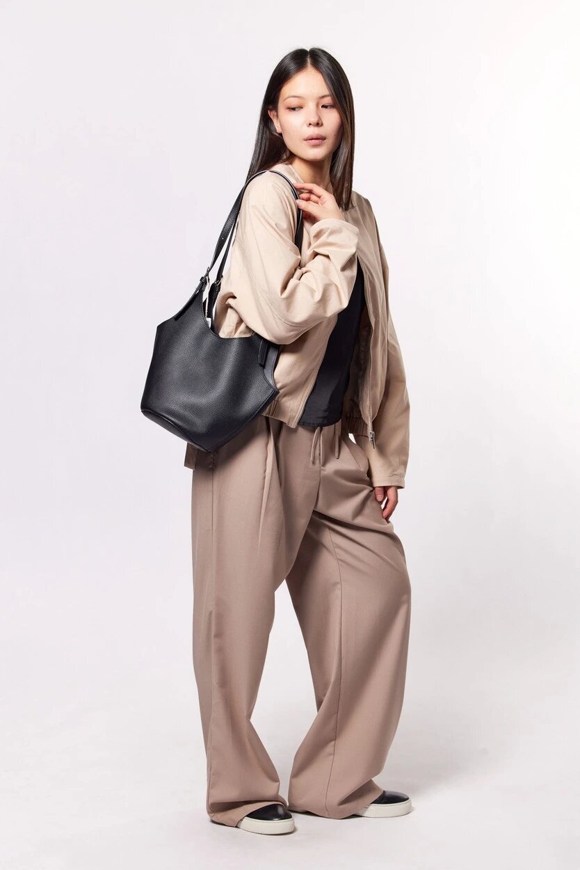 Ветровка свободного кроя со спущенной линией плеча. За счет своей объёмности поможет обладательницам фигуры в виде треугольника сбалансировать объем плеч и бедер. Удобный вариант для спортивных и повседневных образов.
