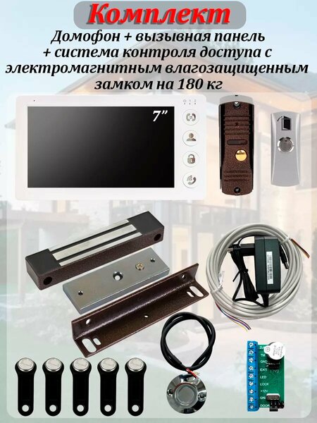 Аналоговый комплект видеодомофона AT-I-K700C/T White с электрическим замком на калитку или входную дверь, с возможностью открытия замка с помощью ключей, входящих в комплект. Решение предназначено для использования в частном секторе (загородный дом, квартира), небольших офисах и других местах на входных группах. Видеодомофон обладает небольшими размерами, при этом оснащен удобным экраном 7" дюймов и современными техническими характеристиками. Модель представлена в белом цвете с перламутровым оттенком, выполнена в корпусе из высококачественного пластика. Управление осуществляется при помощи механических кнопок - это удобно для тех, кому важна обратная тактильная связь. Монитор подключается напрямую к сети 220В, использует стандартную 4-х проводную схему подключения с вызывной панелью. В домофоне есть возможность подключить видеокамеру. В комплект так же входит контроллер, который может работать с разными замками. Память рассчитана на 1000 ключей, что удобно для больших предприятий и компаний. В наборе есть все необходимое для самостоятельного подключения, Вам останется докупить только кабель для подключения замка.