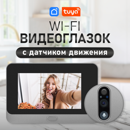 видеоглазок WiFi, видеоглазок с датчиком движения и записью, слот для карт памяти MicroSD, экран 4", приложение Tuya / Smart Life