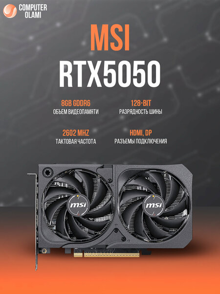 Видеокарта GeForce RTX 5050 MSI SHADOW 2X OC — современное графическое решение для игровых ПК и производительных рабочих систем. Оснащена 8 ГБ видеопамяти GDDR6 и 128-битной шиной, что обеспечивает стабильную производительность в актуальных играх и графических приложениях. Заводской разгон (OC) от MSI позволяет получить дополнительный прирост мощности без ручной настройки. Эффективная система охлаждения SHADOW 2X с двумя вентиляторами поддерживает оптимальные температуры при высокой нагрузке. Наличие 3 разъёмов DisplayPort и 1 порта HDMI позволяет подключать несколько мониторов одновременно, что удобно для гейминга, стриминга и работы с контентом.