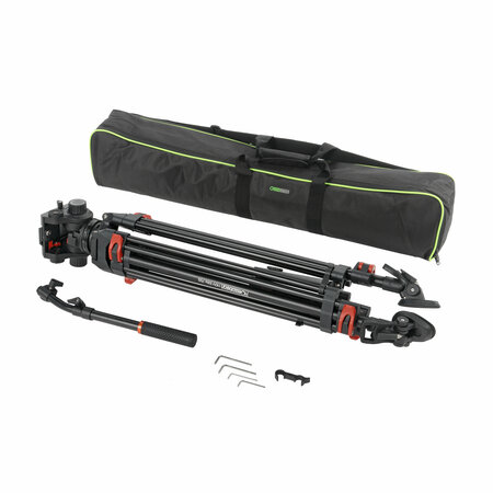 Видеоштатив GreenBean HDV Elite 755 предназначен для стабилизации изображения при видеосъёмке цифровыми видеокамерами или DLSR фотоаппаратами. Чаша 75 мм. Ножки изготовлены из алюминиевых трубок (диаметр 16 и 25 мм), клипсы зажимов секций – из прочного ABS пластика. Максимальная высота 177 см. минимальная рабочая высота 86 см. Подготовка штатива к работе происходит быстро и легко — достаточно ослабить клипсы зажимов. Купить Видеоштатив GreenBean HDV Elite 755 можно видеографам и видеооператорам, которые работают на выезде и нуждаются в профессиональном устройстве для надежной фиксации камеры, а также возможности осуществлять съемку с плавным панорамированием по горизонтали и вертикали. Штатив подходит для большинства популярных цифровых видеокамер Sony, Panasonic и множества других производителей. Для этого в корпусе камеры должно быть резьбовое отверстие 1/4” и 3/8". Жидкостная голова для съемки видео Съёмная голова с жидкостным демпфированием и системой постоянного контрбаланса поворачивается на 360˚ по горизонтали, наклоняется на углы от -60° до +90°, имеет независимые фиксаторы панорамирования, четырёхсекционный регулятор контрбаланса и бесступенчатый регулятор вертикального демпфирования. Голова изготовлена из алюминиево-магниевого сплава. Благодаря жидкостному демпфированию все движения происходят плавно и без рывков. Дополнительно голова оснащена предохранителем площадки, кнопка которого находится на левой стороне. Также на левой стороне головы есть отверстие с системной резьбой 3/8“ для установки дополнительного оборудования или, в зависимости от резьбы на вашей камере, можно ввернуть «лишний» винт для исключения его потери. Винтовое крепление головки к штативу выполнено из стали. На быстросъёмной площадке (стандарт Manfrotto) предусмотрены винты c резьбой 1/4" и 3/8“ (входят в комплект), подпружиненный штифт и противоскользящая вставка. Площадку можно смещать вперёд и назад и фиксировать в выбранном положении. Размер площадки — 50 х 140 мм. Рукоятка Телескопическая рукоятка может устанавливаться как слева так и справа от головы. Рукоятка крепится к головке через зубчатое соединение, что полностью исключает люфт и прокручивание. Для предотвращения износа резьбы на корпусе головки предусмотрены латунные накладки. Длина рукоятки регулируется от 41 до 63 см. Три секции ног Ножки штатива вилочного типа. Секции ног надежно фиксируются клипсовыми замками. При ослаблении клипсового фиксатора — возможна регулировка зажима винтом с обратной стороны клипсы. Шестигранные ключи для регулировки в комплекте. На концах штативных ног размещены парные шипы, на которые надеваются резиновые "башмаки". Таким образом, можно выбрать необходимый тип опоры для различных условий съемки. Шипы используются вне помещений, например для устойчивости на грунте или на льду, а резиновые опоры обеспечивают отличное сцепление на скользких и гладких поверхностях для защиты поверхности пола от царапин и повреждений. Для усиления штатива используется верхняя телескопическая металлическая растяжка, которая не позволяет ногам «разъезжаться». В сложенном виде ножки штатива фиксируются между собой пластиковыми фиксаторами, которые не позволяют штативу разложиться. Минимальная рабочая высота штатива составляет 86 см, максимальная высота 177 см. Пузырьковый уровень Штатив обору