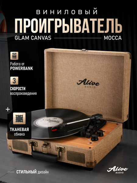 Виниловый проигрыватель Alive Audio GLAM The Canvas Edition Mocca с Bluetooth – это модель, в которой нет ничего лишнего. Настоящее воплощение ретро-стиля, современных технологий, простоты и удобства в использовании. Богатый функционал Возможность подключения цифровых устройств по беспроводному каналу Bluetooth 5.0. Разъемы AUX и RCA-порт, позволяющие слушать любимую музыку через гарнитуру или внешние колонки. Виниловый проигрыватель легко взять с собой на природу, так как он имеет возможность работы от Power Bank.