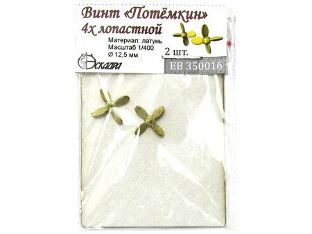 Винт 4-х лопастной для броненосца "Потёмкин" от компаний Огонек, АРК Модел и Моделист. Масштаб 1:400. Количество 2 шт. Материал латунь.