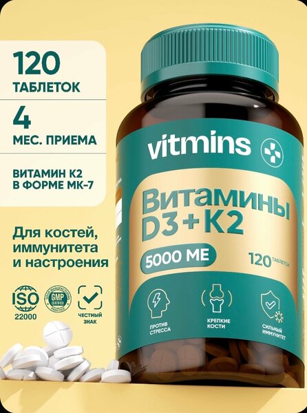 Комплекс Д3 (5000 МЕ) + К2 (50 мкг) – это уникальная комбинация двух важных витаминов, которые играют ключевую роль в поддержании здоровья костей, иммунной и сердечно-сосудистой системы.