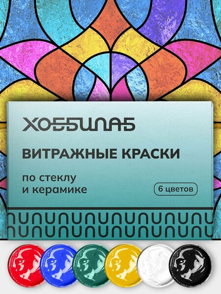 Витражные краски хоббилаб, для стекла и керамики, 20мл, 6 цветов