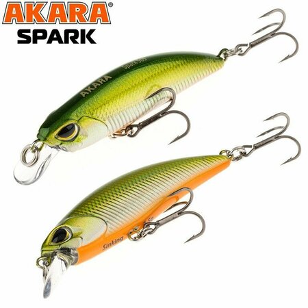 Akara Spark 50S - тонущий воблер типа минноу. Предназначен главным образом для ловли твичингом на течении. Хорошо держит струю и позволяет облавливать разные горизонты. При резких движениях поднимается выше к поверхности, а при плавных потяжках идет ближе ко дну. По мимо ловли на реках Akara Spark 50S занял достойное место и при ловли на стоячих водоемах. Благодаря небольшому обтекаемому телу воблер имеет небольшое сопротивление при забросе и позволяет его закинуть на значительное расстояние. Тонет воблер довольно быстро, поэтому им комфортно будет ловить на глубинах до трех метров. И, не смотря на его небольшой размер, его трофеем может оказаться крупный хищник. Металлические шарики в корпусе воблера создают при проводке акустический эффект, делая приманку более заметной добычей. Характеристики: длина 5 см. вес 3,5 гр. тонущий (S) заглубление регулируемое