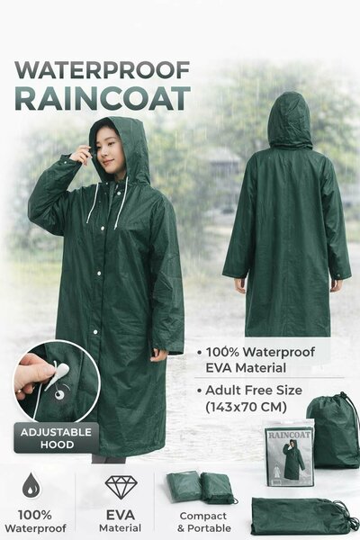 Водонепроницаемый дождевик-плащ из PEVA с капюшоном – многоразовый, плотный, универсальный размер! Надёжная защита от дождя в любую погоду! Устали промокать под внезапным дождём? Этот плотный дождевик из PEVA защитит вас на 100% — вода просто скатывается по поверхности. Преимущества: - 100% водонепроницаемый материал EVA - Плотный и прочный — не рвётся от ветра - Универсальный свободный размер (143×70 см) - Подходит мужчинам и женщинам - Регулируемый капюшон - Удобные кнопки-застёжки - Лёгкий и компактный — складывается в мешочек - Многоразовый — прослужит долго После использования легко складывается и помещается в сумку или рюкзак — всегда под рукой в случае дождя. Подойдёт для: - Путешествий - Велосипеда - Рыбалки - Походов - Работы на улице - Повседневной носки Не ждите, пока дождь испортит ваши планы — добавьте в корзину уже сейчас и будьте готовы к любой погоде!