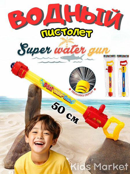 Подарите детям незабываемое летнее развлечение с водным пистолетом Super Water Gun длиной 50 см! Этот пистолет создан специально для активных игр на улице — будь то пляж, дача, парк или двор. Благодаря своей длине и продуманной конструкции он позволяет создавать мощные и дальнобойные струи воды, с которыми водные бои становятся ещё более захватывающими и динамичными. Оптимальный размер и мощность: длина 50 см обеспечивает комфортное удержание и мощный выстрел воды на значительное расстояние, что позволяет вести игру с размахом и увлечением. Простой и надёжный поршневой механизм: чтобы начать игру, достаточно наполнить резервуар водой, затем нажать на курок или выдавить рычаг — и струя воды мгновенно рвётся вперёд. Никаких сложных элементов — всё работает интуитивно. Лёгкий и прочный пластик: корпус пистолета изготовлен из высококачественного пластика, который одновременно лёгкий и устойчивый к ударам и падениям. Это делает игрушку долговечной и безопасной даже при активных играх. Эргономичная ручка: удобный хват пистолета продуман так, чтобы ребёнок мог крепко держать его даже мокрыми руками, не испытывая дискомфорта. Яркий дизайн и насыщенные цвета: пистолет привлекает внимание и поднимает настроение благодаря стильному оформлению, которое обязательно понравится детям обоих полов. Безопасность в приоритете: мягкий наконечник не травмирует при случайном контакте, а плавный ход механизма исключает заедания и резкие рывки. Идеальное развлечение для: Летних прогулок и активного отдыха на природе Водных боёв и игр с друзьями Семейных пикников и пляжных вечеринок Развития ловкости, координации движений и меткости у детей Преимущества для родителей: Простота в эксплуатации и уходе — легко промыть и просушить после игры Безопасные материалы и конструкция, отвечающие стандартам детских игрушек Отличное соотношение цена — качество для активных летних развлечений С водным пистолетом лето станет настоящим праздником ярких эмоций, смеха и весёлых водных приключений! Позвольте ребёнку насладиться свободой движения и радостью игры на свежем воздухе!