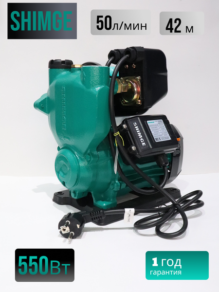 Shimge PW — это высокомощные одноступенчатые центробежные насосы, предназначенные для эффективной перекачки чистой воды и других неагрессивных жидкостей. Они отличаются высокой производительностью, надёжной работой и прочной конструкцией. Эти насосы широко применяются в системах водоснабжения, крупных системах орошения, для повышения давления, в промышленных процессах и в сельском хозяйстве. - Что такое "водяная точка" Это, например, один кран, душ, бачок унитаза и т. п. PW550: 5–6 точек, если они не работают одновременно. Технические характеристики: Модель: PW 550 Максимальная производительность: 50 л/мин Максимальный напор: 42 м Мощность двигателя: 550 Вт Напряжение: 220 В/ 50 Гц Глубина всасывания: 8м Материал корпуса: чугун Обороты двигателя: 2850 об/мин