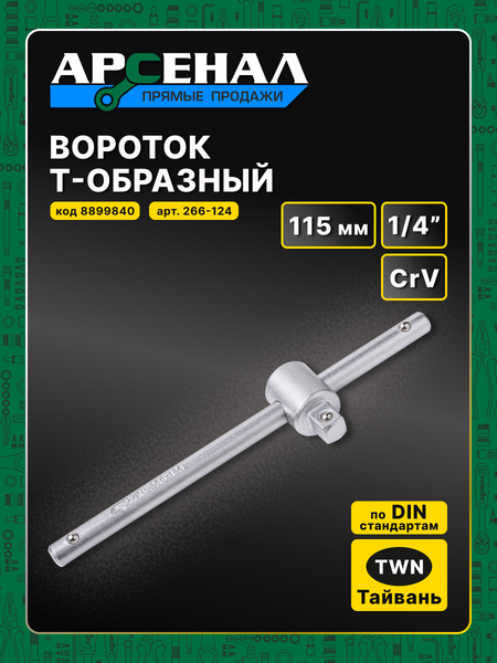 Вороток Т-образный 1/4 115мм с 2-мя подпружиненными шариками от Арсенал - это надежный инструмент, который станет незаменимым помощником в работе с крепежом. Материал и конструкция: Вороток изготовлен из хромованадиевой стали, что обеспечивает высокую прочность и долговечность инструмента. Т-образная форма воротка позволяет работать с головками в труднодоступных местах. Подпружиненные шарики: Два подпружиненных шарика в конструкции воротка обеспечивают плавное и мягкое вращение, предотвращая повреждение крепежа и головок. Посадочный квадрат: Вороток оснащен посадочным квадратом 1/4", что позволяет использовать его с широким спектром головок и трещоток. Выбирая вороток Т-образный 1/4 115мм с 2-мя подпружиненными шариками от Арсенал, вы получаете надежный и качественный инструмент, который прослужит вам долгое время и поможет выполнить множество задач.