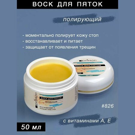 Эффективный полирующий воск для пяток на пасечном пчелином воске, с натуральными маслами оливы, сосны и витаминами А, Е. Предназначен для проведения аппаратного педикюра и шлифовки кожи. Содержит продукты пчеловодства. При наличии аллергии сделать предварительную пробу на коже. Крем-воск моментально полирует кожу стоп, заполняя микротрещины, восстанавливает, питает, помогает коже дольше оставаться гладкой, защищает от дальнейшего появления трещин, оздоравливает, обладает пролонгированным действием. Способ применения: Нанести небольшое количество средства на выбранный участок стопы. Обработать кожу аппаратом привычной насадкой для полировки.