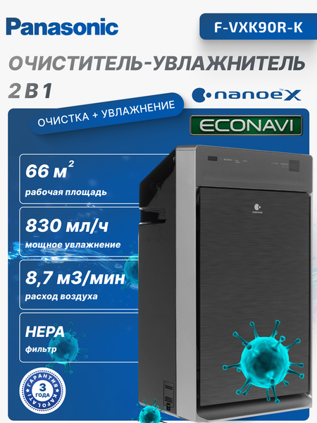 Очиститель воздуха Panasonic MEGA CATCHER F-VXK90, с функцией увлажнения, 88 Вт, 66 м²