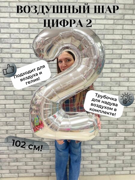 Фольгированный воздушный шар «Цифра 2», серебристый, 102 см — украшение для идеального праздника! Преобразите любое мероприятие с эффектным фольгированным шаром в виде цифры «2» серебристого цвета! Элегантный дизайн и внушительный размер (102 см) сделают его центральным элементом декора. Ключевые характеристики: Форма: цифра «2». Цвет: серебристый (с характерным металлическим блеском). Размер: 102 см — идеально для фотозоны или оформления зала. Материал: качественная фольгированная плёнка — прочная, устойчивая к повреждениям. Надув: подходит для наполнения гелием или воздухом. Где пригодится: -оформление дня рождения (особенно актуально для первого дня рождения малыша); -тематические вечеринки и конкурсы; -фотозоны — шар станет стильным фоном для снимков; -украшение витрин магазинов, залов кафе и ресторанов; -оформление мероприятий, связанных с достижениями (например, первое место в конкурсе). Почему выбирают наши шары: -Долговечность: фольгированные шары держат форму значительно дольше латексных. -Безопасность: нетоксичный материал, подходит для детских праздников. -Лёгкость в использовании: легко надувается, не требует специальных навыков. -Эффектный внешний вид: серебристый цвет добавляет нотку роскоши и стиля. Советы по использованию: -избегайте острых предметов рядом с шаром; -не подвергайте воздействию прямых солнечных лучей и высоких температур; -для максимального эффекта сочетайте с другими фольгированными шарами или гирляндами. Добавьте нотку торжественности в ваш праздник с нашим серебристым шаром-цифрой! Закажите прямо сейчас!
