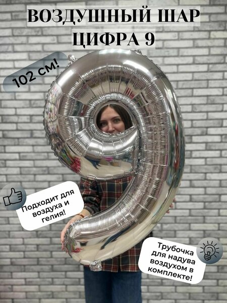 Фольгированный воздушный шар «Цифра 9», серебристый, 102 см — украшение для идеального праздника! Преобразите любое мероприятие с эффектным фольгированным шаром в виде цифры «9» серебристого цвета! Элегантный дизайн и внушительный размер (102 см) сделают его центральным элементом декора. Ключевые характеристики: Форма: цифра «9». Цвет: серебристый (с характерным металлическим блеском). Размер: 102 см — идеально для фотозоны или оформления зала. Материал: качественная фольгированная плёнка — прочная, устойчивая к повреждениям. Надув: подходит для наполнения гелием или воздухом. Где пригодится: -оформление дня рождения (особенно актуально для первого дня рождения малыша); -тематические вечеринки и конкурсы; -фотозоны — шар станет стильным фоном для снимков; -украшение витрин магазинов, залов кафе и ресторанов; -оформление мероприятий, связанных с достижениями (например, первое место в конкурсе). Почему выбирают наши шары: -Долговечность: фольгированные шары держат форму значительно дольше латексных. -Безопасность: нетоксичный материал, подходит для детских праздников. -Лёгкость в использовании: легко надувается, не требует специальных навыков. -Эффектный внешний вид: серебристый цвет добавляет нотку роскоши и стиля. Советы по использованию: -избегайте острых предметов рядом с шаром; -не подвергайте воздействию прямых солнечных лучей и высоких температур; -для максимального эффекта сочетайте с другими фольгированными шарами или гирляндами. Добавьте нотку торжественности в ваш праздник с нашим серебристым шаром-цифрой! Закажите прямо сейчас!