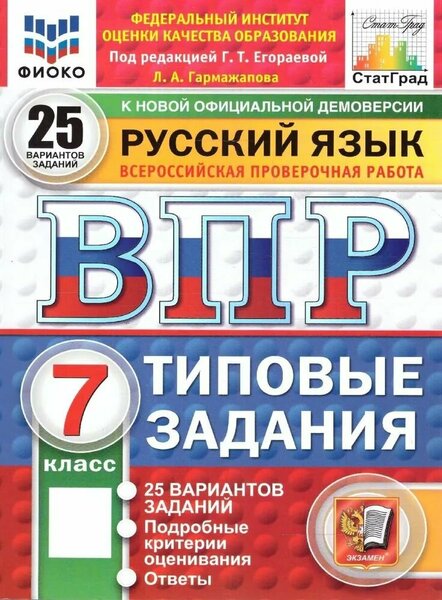 ВПР. фиоко, статград, русский язык. 7 класс. 25 вариантов. ТЗ