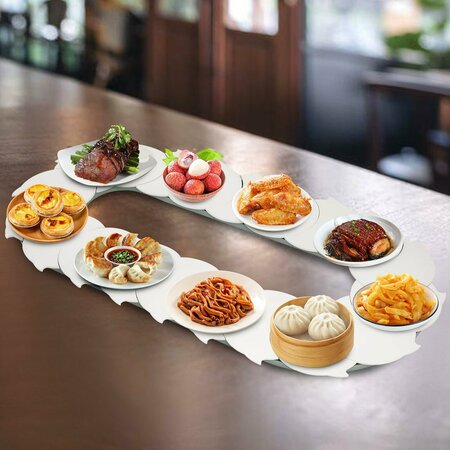 Представляем вам уникальное решение для вашего обеденного стола — вращающийся поднос диаметром 2 метра. Этот изысканный круглый поднос с функцией вращения добавит вашей трапезе комфорта и элегантности, делая каждый приём пищи более приятным и удобным. Вращающийся поднос для стола, также известный как Lazy Susan, идеально подходит для больших семейных обедов или встреч с друзьями, обеспечивая лёгкий доступ ко всем блюдам без необходимости вставать и тянуться через стол. Созданный с учетом всех современных требований, вращающийся сервировочный поднос отличается прочностью и устойчивостью, что позволяет ему выдерживать значительные нагрузки. Поднос оборудован надёжным механизмом, обеспечивающим плавное и беззвучное вращение, добавляя изысканности вашей сервировке. Вращающийся поднос для сервировки предоставляет возможность стильно разместить различные блюда, закуски или напитки, превращая каждую трапезу в изысканное кулинарное событие. Этот вращающийся поднос для кухни не только функционален, но и служит прекрасным декоративным элементом, дополняя общий стиль вашего интерьера. Он также может использоваться как подставка для стола, предлагая множество вариаций использования, от сервировки блюд до демонстрации декоративных композиций или праздничного декора. Обеденный стол с таким вращающимся подносом становится центром внимания, привлекая взгляды гостей и семьи. Крутящееся блюдо для стола особенно ценится за свою способность организовать пространство и сделать каждую обстановку за столом более дружественной и доступной для всех. Это прекрасное решение для ресторанов, кафе или домашних кухонь, где важны как внешняя привлекательность, так и функциональность. Оцените удобство и стиль с этим вращающимся подносом, который сделает каждый прием пищи более комфортным и эстетически приятным. Легкий в уходе и использовании, он станет вашим незаменимым помощником в создании идеальных обеденных условий, придавая вашей кухне или столовой налёт утончённой роскоши и современности.