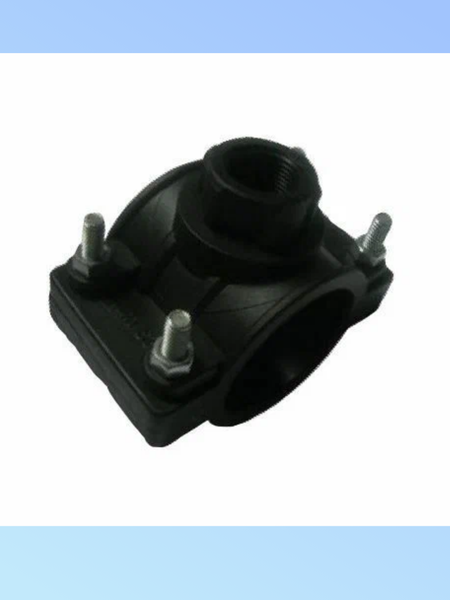 Хомут врезка - это пластиковые хомуты, набор болтов с гайками для обжима хомутов и резиновое уплотнительное кольцо. Такая конструкция плотно прижимается болтами к трубе, а уплотнительное кольцо создает дополнительную герметичность соединения. Хомут врезка может иметь и два выхода под резьбу. Такие варианты используются в системах полива, сокращая тем самым количество хомутов на длинных расстояниях трубопровода. Отверстие в полиэтиленовой трубе, на которую предварительно надето седло с хомутом, следует делать прямо через резьбовой отвод шуруповёртом со специальным сверлом или прорезать дыроколом.