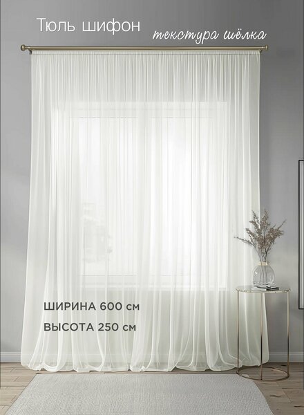 Однотонная матовая вуаль из очень приятного на ощупь шифонового полотна. Легкая струящаяся ткань, красиво драпируется и добавляет эстетичности и легкости любому пространству. Тюль мягко рассеивает свет, воздухопроницаем, практически не мнется. Тюль идеально подойдёт для гостиной, спальни, детской комнаты и отлично впишется в любой стиль интерьера. Плотность ткани: 100 г/м2 Ширина шторной ленты — 6 см. Крепление на карниз с помощью крючков или крючки кольца, а также есть кулиска на трубу до 30 мм диаметром. Перед стягиванием кордных нитей необходимо связать нити между собой с обеих сторон шторной ленты. Рекомендована деликатная стирка при температуре не выше 30 °C без отжима и отбеливания. После стирки гладить не обязательно, тюль разгладится под собственным весом, достаточно повесить его влажным на карниз. Отпаривание до 110 градусов.