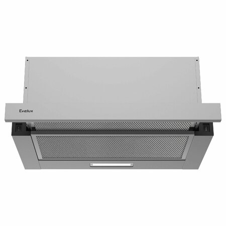 Встраиваемая телескопическая вытяжка Evelux Tel 50 – это универсальное решение для кухни любого метража. Ширина вытяжки 60 см соответствует стандартным полноразмерным варочным поверхностям. Корпус вытяжки скрыт за фасадом настенного шкафа, а рабочая панель в классических цветах выдвигается только в процессе использования. Два режима: умеренный и мощный – переключаются нажатием кнопок справа на панели управления. Вытяжка начнет работу в том режиме, в котором была выключена. Выдвижная панель из металла легко очищается специальными средствами от жира и пыли, не нагревается при длительном использовании подсветки. Яркие LED-лампы существенно экономят электроэнергию в сравнении с лампами накаливания и долговечны. Алюминиевые фильтры предохраняют мотор вытяжки от попадания жира. Угольные фильтры(приобретаются отдельно) забирают на себя запахи и копоть, очищая воздух в режиме рециркуляции, когда вытяжка не подключена к вентиляционному каналу.