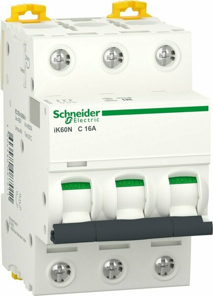 Автоматический выключатель SCHNEIDER ELECTRIC Acti9 iК60N 3P 16А С 6 кА (A9К24316) предназначен для защиты электрической цепи от перегрузки и токов короткого замыкания, а также разъединения, включения и отключения. Применяется в жилых строениях, а также в коммерческих и промышленных объектах.