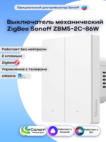 Выключатель механический ZigBee Sonoff ZBM5-2C-86W - это надежное и функциональное устройство для управления освещением в вашем доме. Он работает на протоколе связи ZigBee 3.0, что обеспечивает высокую скорость передачи данных и стабильность работы. Выключатель оснащен механическим типом управления, что делает его простым и удобным в использовании. Максимальное напряжение составляет 240 В, что позволяет использовать его с различными источниками света. Устройство имеет белый цвет, что позволяет ему гармонично вписаться в любой интерьер. В комплект поставки входят выключатель, инструкция и крепежные элементы (2 шт.), что обеспечивает удобство установки и использования. Для подключения выключателя требуется наличие ZigBee шлюза, что обеспечивает стабильную и надежную работу устройства. Тип крепления - винтовое, что гарантирует прочное и надежное соединение. Вес товара составляет всего 220 г, что делает его легким и компактным. Выключатель механический ZigBee Sonoff ZBM5-2C-86W - это современное и функциональное решение для управления освещением в вашем доме.