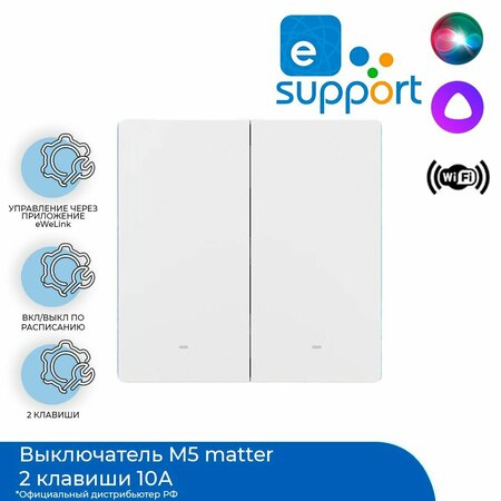 Двухклавишный выключатель Sonoff M5-2C-86W (Matter) позволяет обеспечить беспроводную связь с различными составляющими системы "умный дом". Вы можете использовать его с помощью специальных платформ, таких как Alexa, Google Home и Apple Home, а также подключаться к устройствам других брендов. Беспроводной выключатель света отличается быстрым временем отклика и высокой стабильностью. Даже в случае возникновения проблем в сети, дистанционный выключатель M5 Matter работает бесперебойно. С помощью приложения eWeLink Вы сможете управлять устройствами в любое удобное для Вас время и не беспокоиться, что забудете выключить электроприборы, выходя из дома. Настенный выключатель также оснащен физическими кнопками для местного управления. Есть возможность отрегулировать светодиодную подсветку для определения местоположения электроприбора в темноте. Индикатор можно регулировать по яркости в соответствии с Вашими пожеланиями. Если Вам необходимо быстро найти кнопку включения света, можно сделать его более ярким, или же наоборот, если предпочитаете отдыхать без постороннего света. Умный выключатель с дистанционным управлением позволяет спокойно работать и при этом контролировать освещение вокруг, не вставая каждый раз и не отрываясь от важных дел. Поддерживает голосовое управление, работает с сервисами Alexa, Google Home, Apple Siri и Алиса. Когда Вы заняты, всегда можно включить свет в комнате с помощью голоса. Также выключатели связываются с дверным датчиком DW2-WiFi, который автоматически включает свет, когда открывается дверь. По желанию, можно установить временное расписание для управления освещением в доме. По истечении установленного времени свет выключается автоматически. Монтаж предусматривает ряд несложных действий: необходимо поместить блок питания в рамку выключателя, затем рамку - в специальную монтажную коробку, затянуть все винты и после этого установить модуль выключателя. Наслаждаться комфортом и уютом в доме просто с брендом Sonoff!