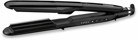 Щипцы Babyliss ST492E входит в серию Steam Straight. Они не только выпрямляют волосы, но и дополнительно увлажняют их паром. Преимущества: Увлажнение при выпрямлении Равномерное распределение температур Насадка-расческа д/выпрямления волос Керамическое покрытие Быстрый нагрев Вращающийся шнур Характеристики: Материал корпуса: пластик Регулировка температуры Температура нагрева (5 режимов): 150-230С Время нагрева: до 30 сек Материал щипцов: пластик Индикация включения Индикация режима работы Индикация температуры Индикация готовности к работе Отключение при перегреве Автоматическое отключение Потребляемая мощность: 67 Вт Вращающийся шнур: 2.5м Цвет: черный Вес: 480 г Комплектация: Щипцы Термостойкий коврик