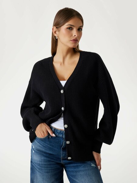 Достоинства:очень стильный черный кардиган, подходит к джинсам, юбке, платью. очень красиво ложится рукав, можно поднять. Недостатки:немного трудновато застёгивается пуговицы,т.к они рельефные, но если надевать,как джемпер, это не мешает. Комментарий:отличная покупка для меня!!