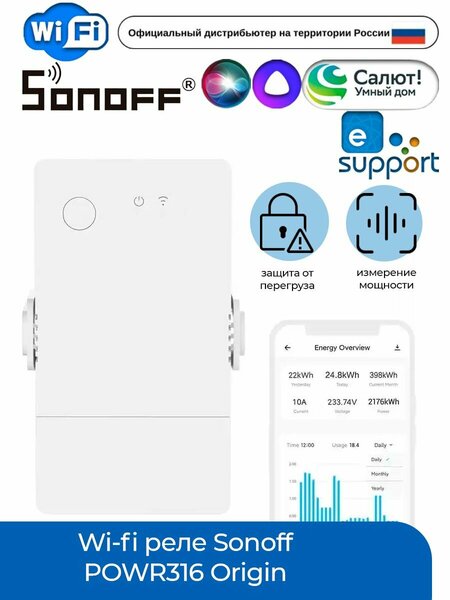 Sonoff POWR316 Origin 16A Wi-Fi реле без дисплея - умное Wi-Fi реле с функцией мониторинга (контроля) и управления энергопотреблением подключенного через него электроприбора с пропускным током до 16А и максимальной мощностью до 3500W. Реле Sonoff POWR316D Wi-Fi с дисплеем является обновленной версией умного реле предыдущего поколения Sonoff POW R2. Данное реле позволяет вести учет потребляемой электроэнергии в режиме реального времени, отслеживать текущий ток и напряжение в сети. Кроме этого, Sonoff POWR316 Origin 16A Wi-Fi реле без дисплея имеет встроенную защиту от перегрузки и функцию автоматического отключения подключенных устройств при превышении заданных пороговых значений тока, напряжения и/или мощности в сценариях этого устройства. Sonoff POWR316 Origin 16A Wi-Fi реле без дисплея позволяет сократить затраты на потребляемую электроэнергию путем выключения/включения электроприборов по заданному сценарию, обеспечивает защиту от перегрузки сети и непроизвольного возгорания проводки из-за перегрузки за счет автоматического отключения при достижении пикового порога потребления мощности. Однако, для гарантированной защиты вашего дома (квартиры) необходимо позаботиться о качественной проводке нужного сечения в паре с автоматическими выключателями соответствующего номинала по току (смотрите ниже схему подключения Реле Sonoff POWR316 Wi-Fi без дисплея). Удаленное управление реле осуществляется при наличии постоянного интернет сигнала через приложение «eWeLink». Одним из преимуществ данного реле является его автономная работа в локальной сети без наличия интернета по заданным сценариям после первичного подключения к сети интернет! Так же с помощью функции «Scene» (сценарии) Вы можете создавать различные алгоритмы включения/выключения приборов совместно или последовательно, например настроив автовыключение обогревателя, когда Вы выключаете бойлер и/или наоборот.